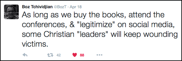 Below is a quote I recently received from a Christian celebrity friend of mine. This man has spoken at Mahaney’s church and continues to promote books authored by Mahaney. I have pleaded with him to cease doing so, but in spite of never examing the evidence for himself, he is certain Mahaney is an innocent man. Why? Because Mark Dever told him so.