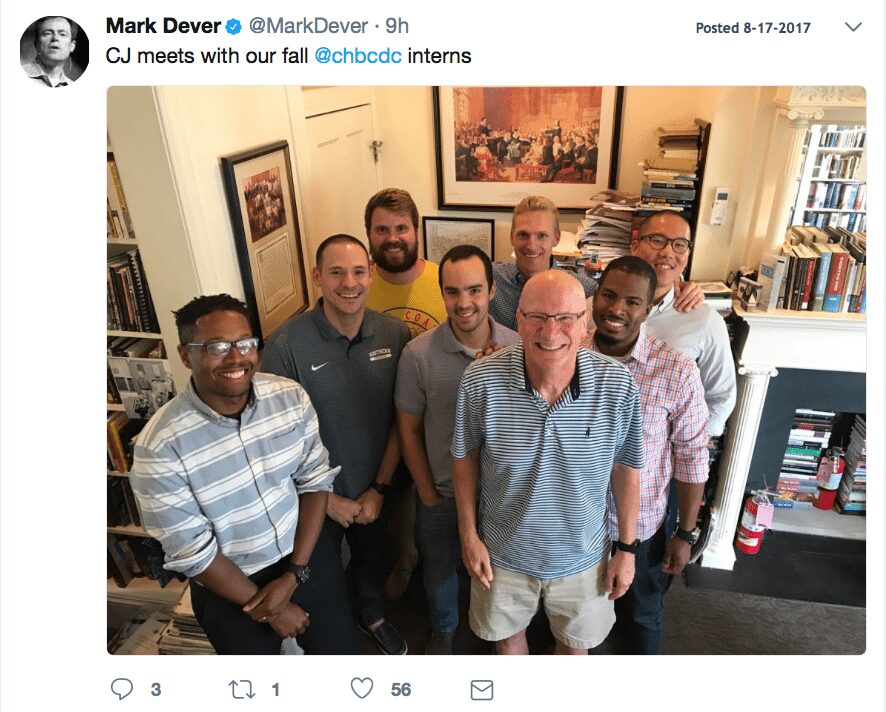Apparently a $10,000 donation to Mark Dever will also purchase you two slots to Mark Dever’s internship program. Brian Chesemore and Mike Bradshaw are both son-in-laws of C.J. Mahaney. Back in 2012, at the height of furor over the Sovereign Grace sexual abuse scandal, C.J. was able to parlay his friendship with Dever into obtaining two slots in the Spring internship program at Capitol Hill Baptist Church for his boys. As the course was winding down Mike Bradshaw produced a typical Sovereign Grace type video – short segments of the CHBC intern class taking turns thanking Mark Dever, the elders and the members at CHBC with hip music rising in volume during the segues. The first two guys speaking are Brian Chesemore followed by Mike Bradshaw. Chesemore is an assistant pastor at Mahaney’s runaway church plant in Louisville and Bradshaw is a deacon. I leave it to the good members of CHBC to determine if their monies were put to good use!