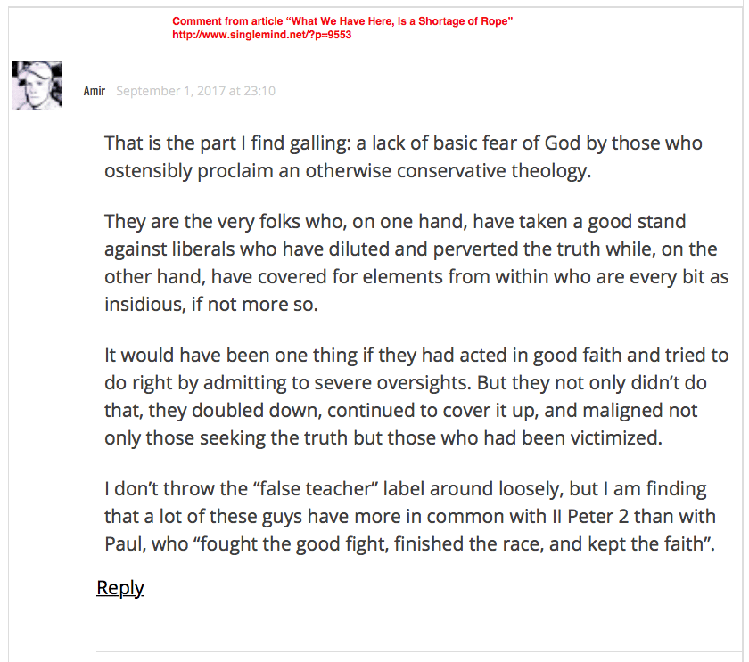 I leave you with some cold, hard evidence of what type of man C.J. Mahaney is, and what type of organization he led. Don’t take my word for it, and definitely don’t take Mark Dever’s word for Mahaney’s innocence. Do some work for yourself. The truth is out there for all to see.