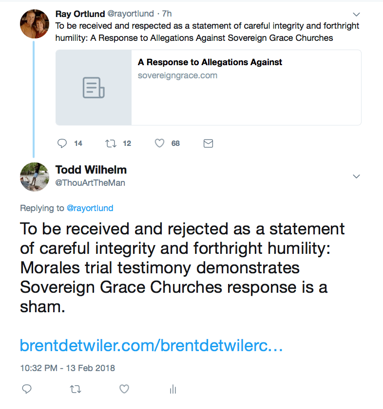 Let me only add that individuals speaking publicly about Sovereign Grace does not damage churches and gospel ministries. The damage was done when your “gospel ministers” conspired to cover-up abuse.
