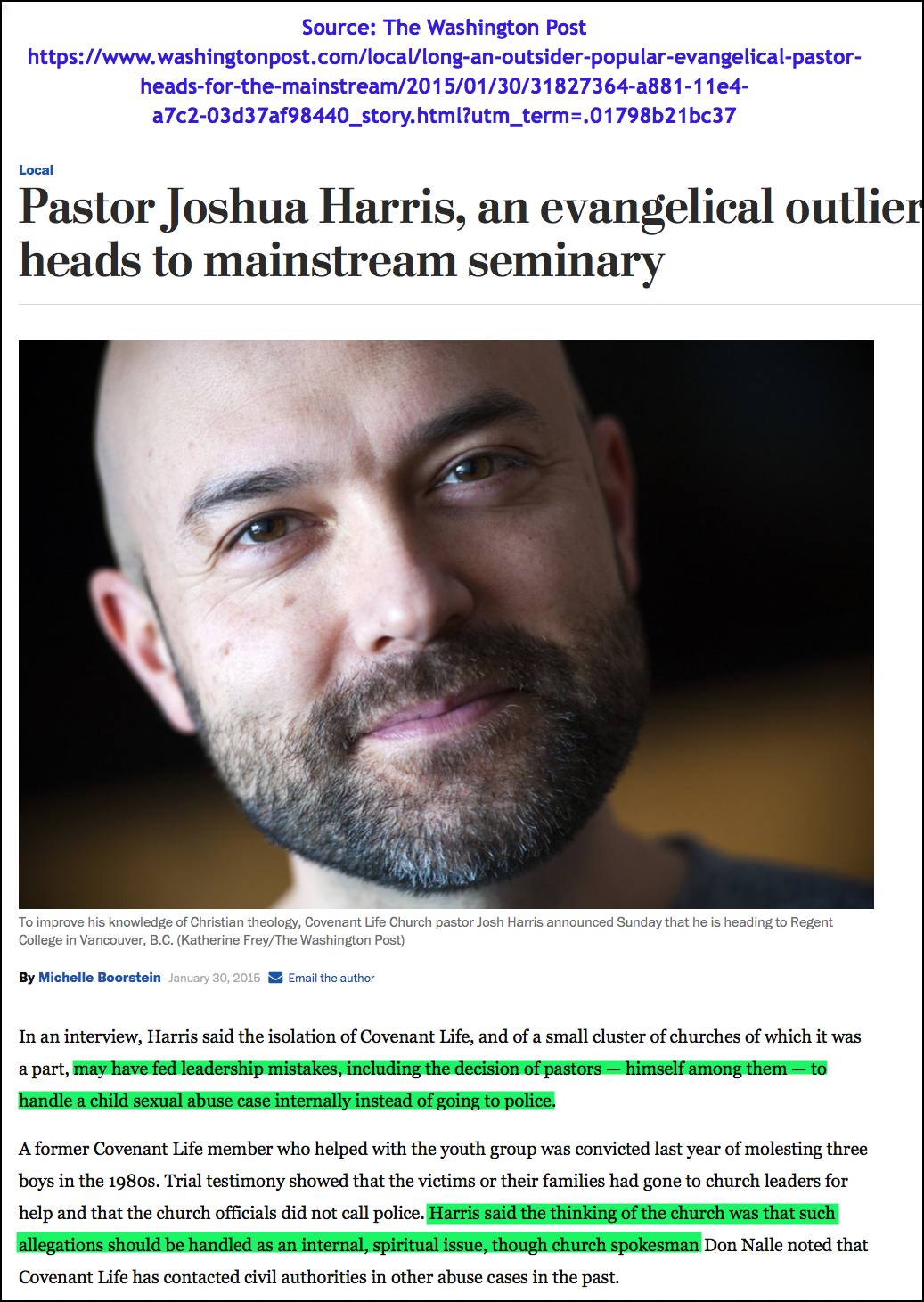 “Harris said the thinking of the church was that such allegations should be handled as an internal, spiritual issue.” (See the Washington Post screen capture from January 2015 above.)