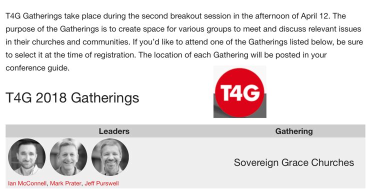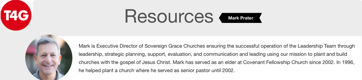 That Mark Prater leads a denomination like SGC is not surprising. What I find disconcerting is that a guy like Mark Prater has been extended an invitation to speak at T4G! With major conference roles given to leaders of the SGC denomination, along with the T4G leaders continuing strong endorsement of CJ Mahaney, a sincere Christian should rightly question whether supporting this conference is warranted.
