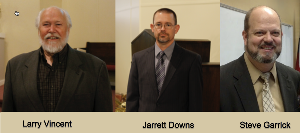 Below are photos of the three men who were pastors at Heritage Baptist Church. Larry Vincent and Jarrett Downs are still pastors there. Steve Garrick was sent from Heritage Baptist to plant a new church, Emmanuel Baptist, in Georgetown, Texas.