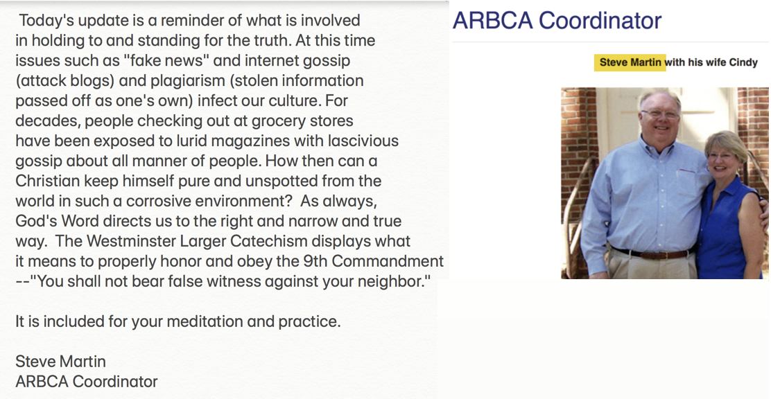 I doubt the Judge’s words will have any impact on this corrupt group of ARBCA leaders. In fact, today another member of their gang sent this out to the dwindling ranks of faithful followers: