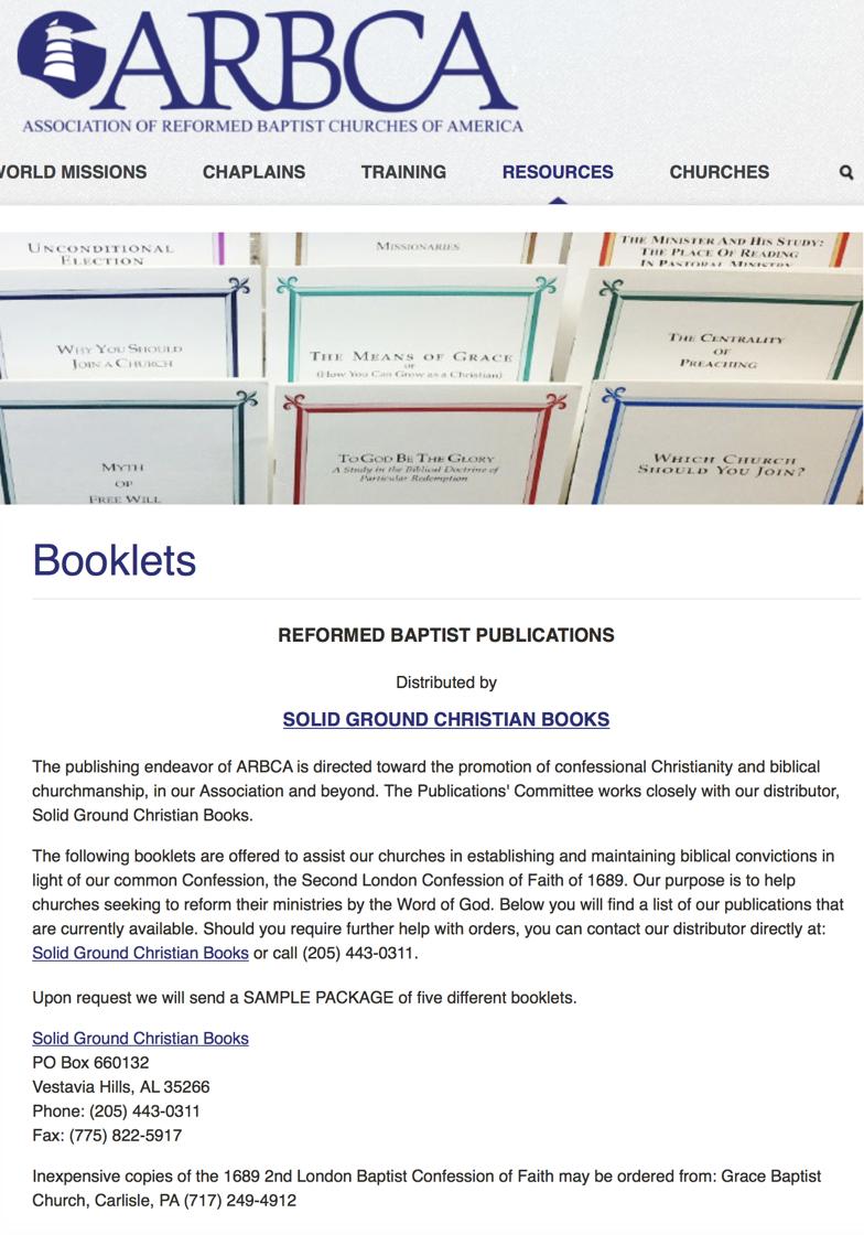 Of note, ARBCA continues their close ties with Michael Gaydosh and Solid Ground Christian Books. The screenshot below was taken from the ARBCA.com website.