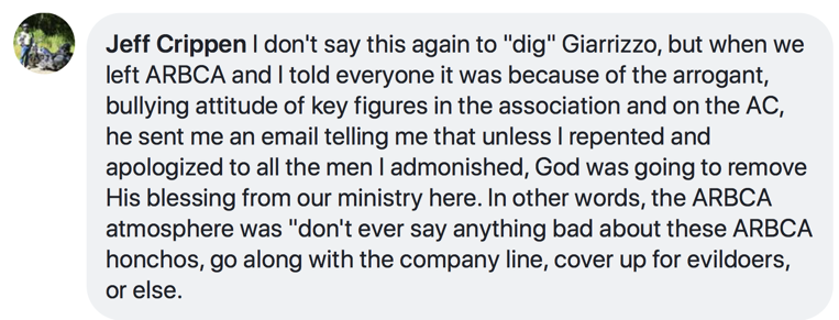 Below is the photo of the ARBCA Administrative Council for the year 2000. John Giarrizzo denied for months that he was a member of this Council, but due to the Weinland’s persistence in digging up factual evidence, they unearthed this photo which proved Giarrizzo to be lying.