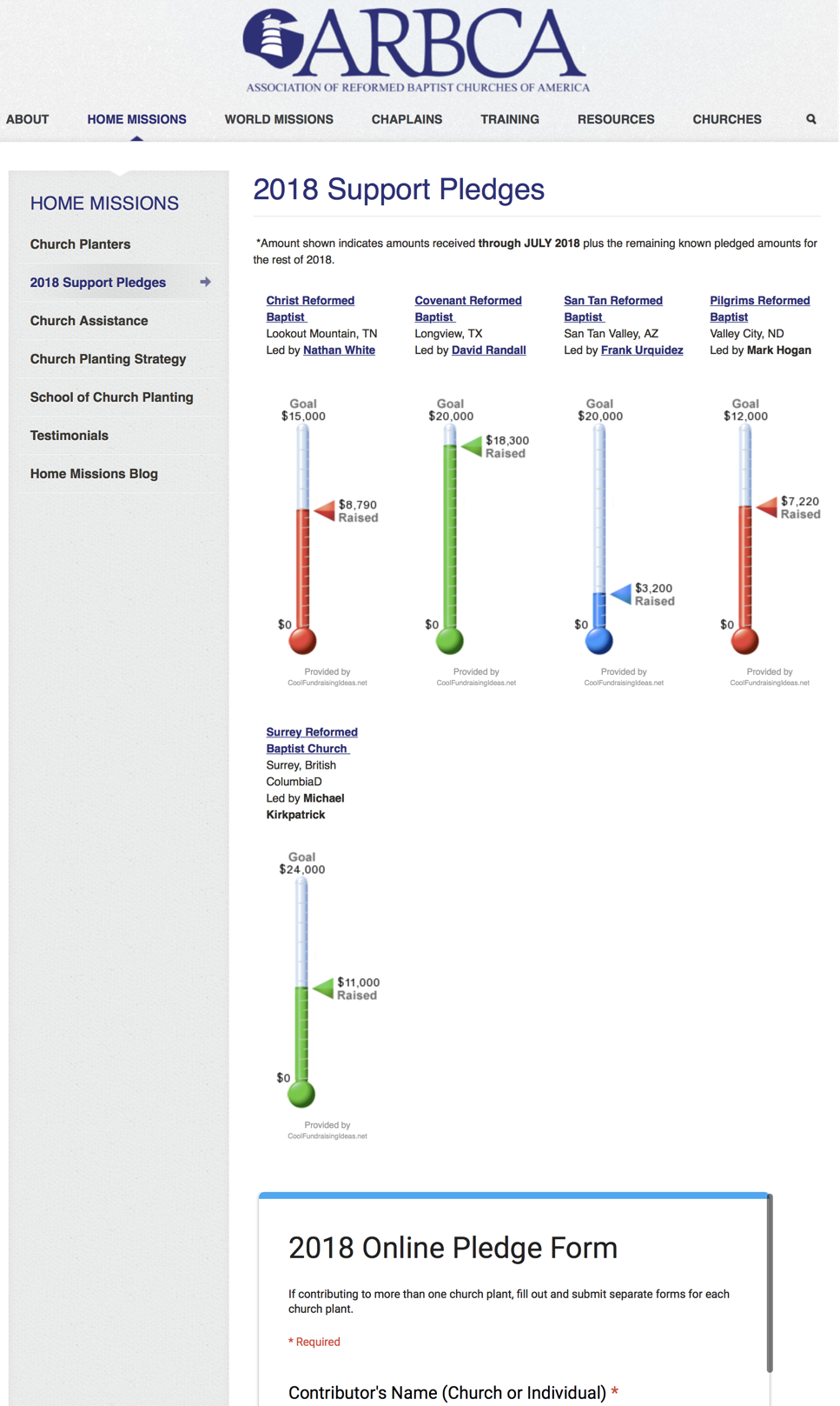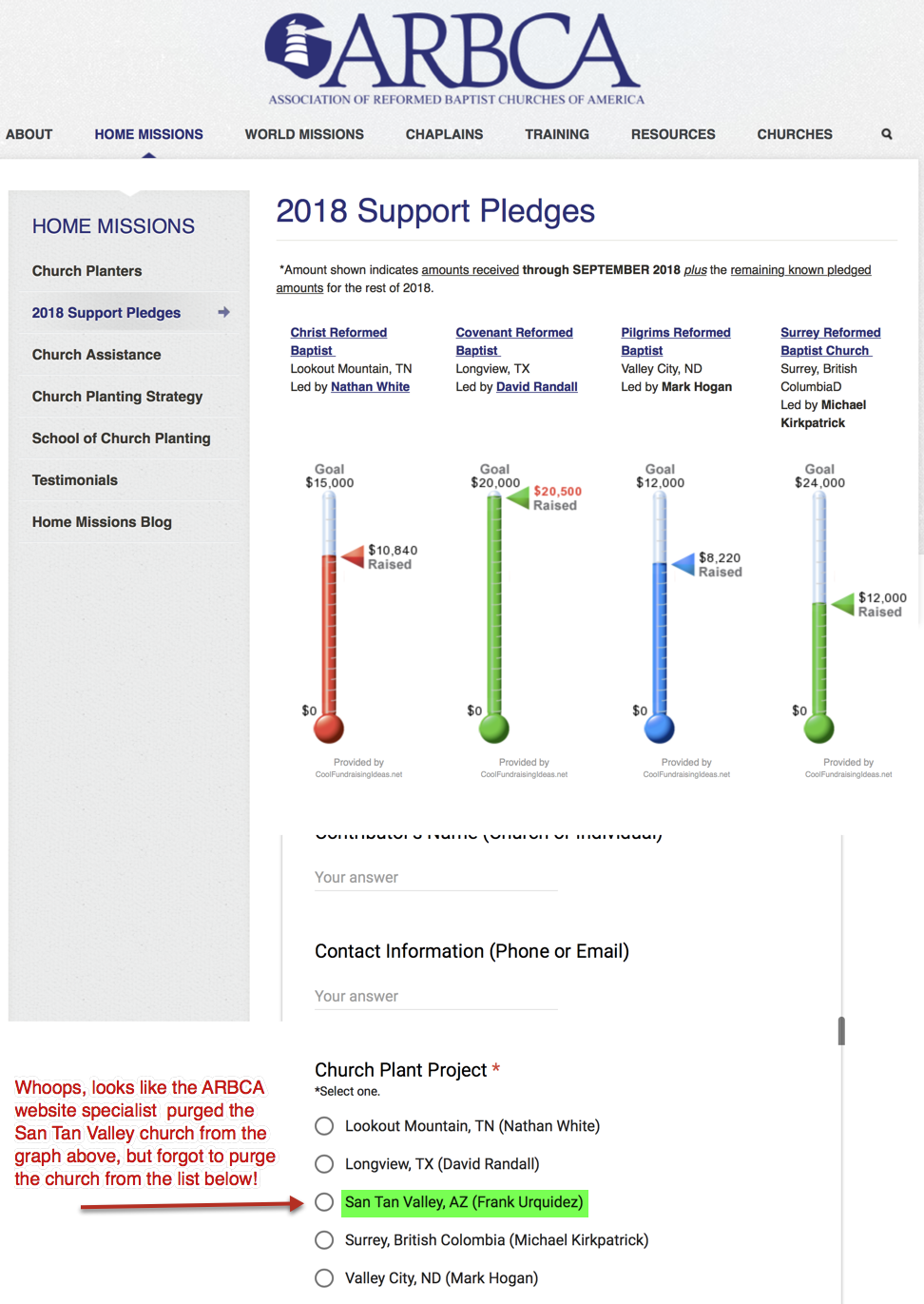 Two days ago I took a screen shot of the money five ARBCA church plants have received. You will notice San Tan Reformed Baptist had raised only $3,200. (San Tan Reformed Baptist Church was a church plant of Grace Covenant Church.)