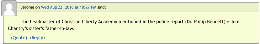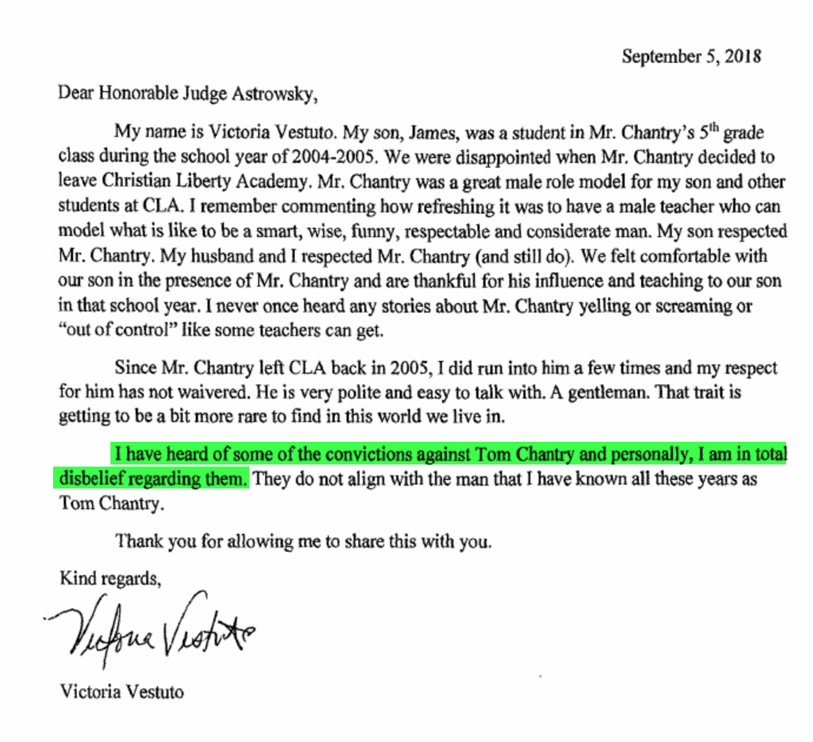 Why would people from CLA encourage individuals to write positive character reference letters to Judge Astrowsky on behalf of Thomas Chantry in hopes of obtaining a more lenient sentence? According to Illinois State Representative, Tom Morrison “people he knows from Christian Liberty encouraged him to send a letter on Chantry’s behalf.”