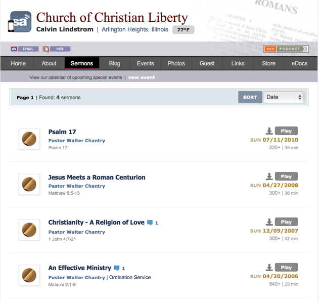 Walter Chantry has spoken at the CLA chapel service many times. He has also preached at Church of Christian Liberty on at least four occasions. (Church of Christian Liberty is affiliated with Christian Liberty Academy.)