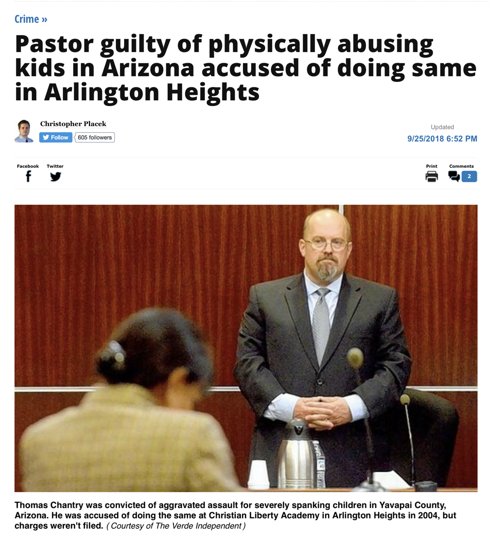 “Morrison had sent the note to attorneys seeking leniency for Thomas Chantry, a pastor/teacher recently convicted of child abuse in Arizona. The abuse occurred nearly 20 years ago, before Morrison knew Chantry when they were both 5th grade school teachers at Christian Liberty Academy in Arlington Heights. During court proceedings, Arizona prosecutors had described the incidents as “unspeakable acts of sadistic physical abuse.”