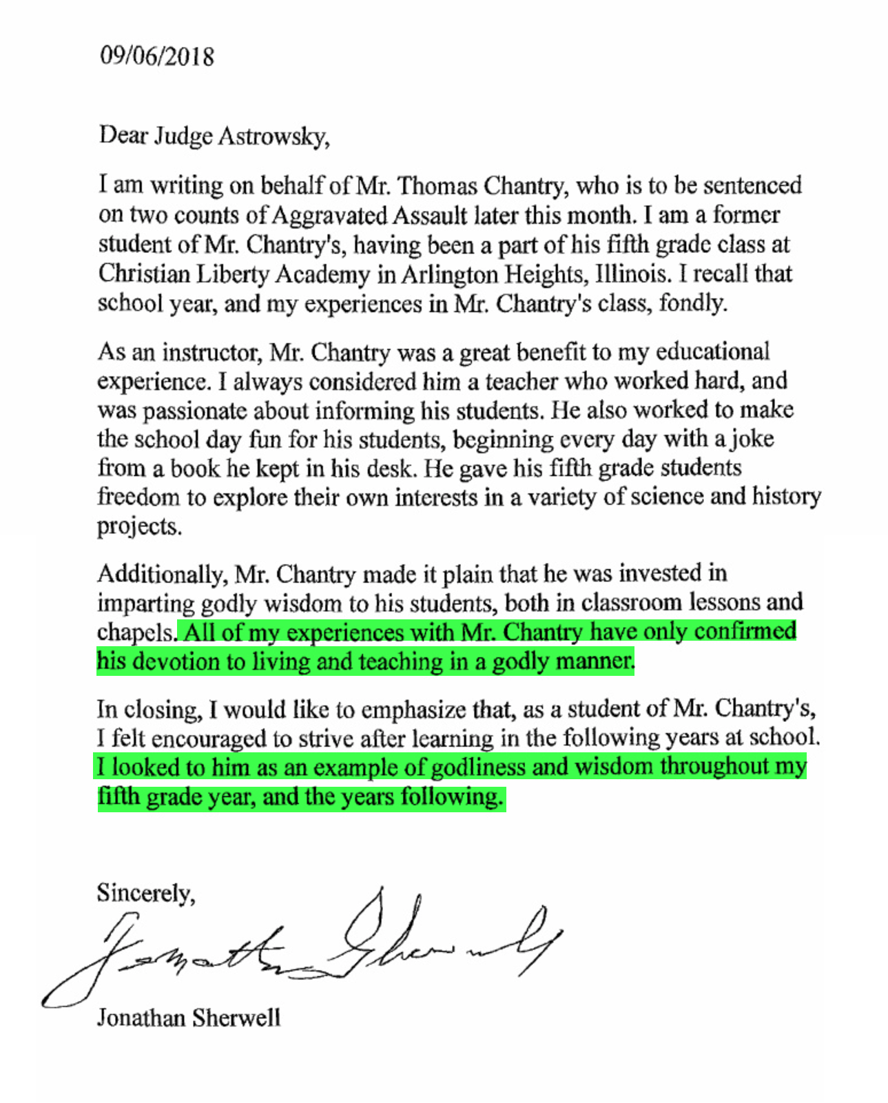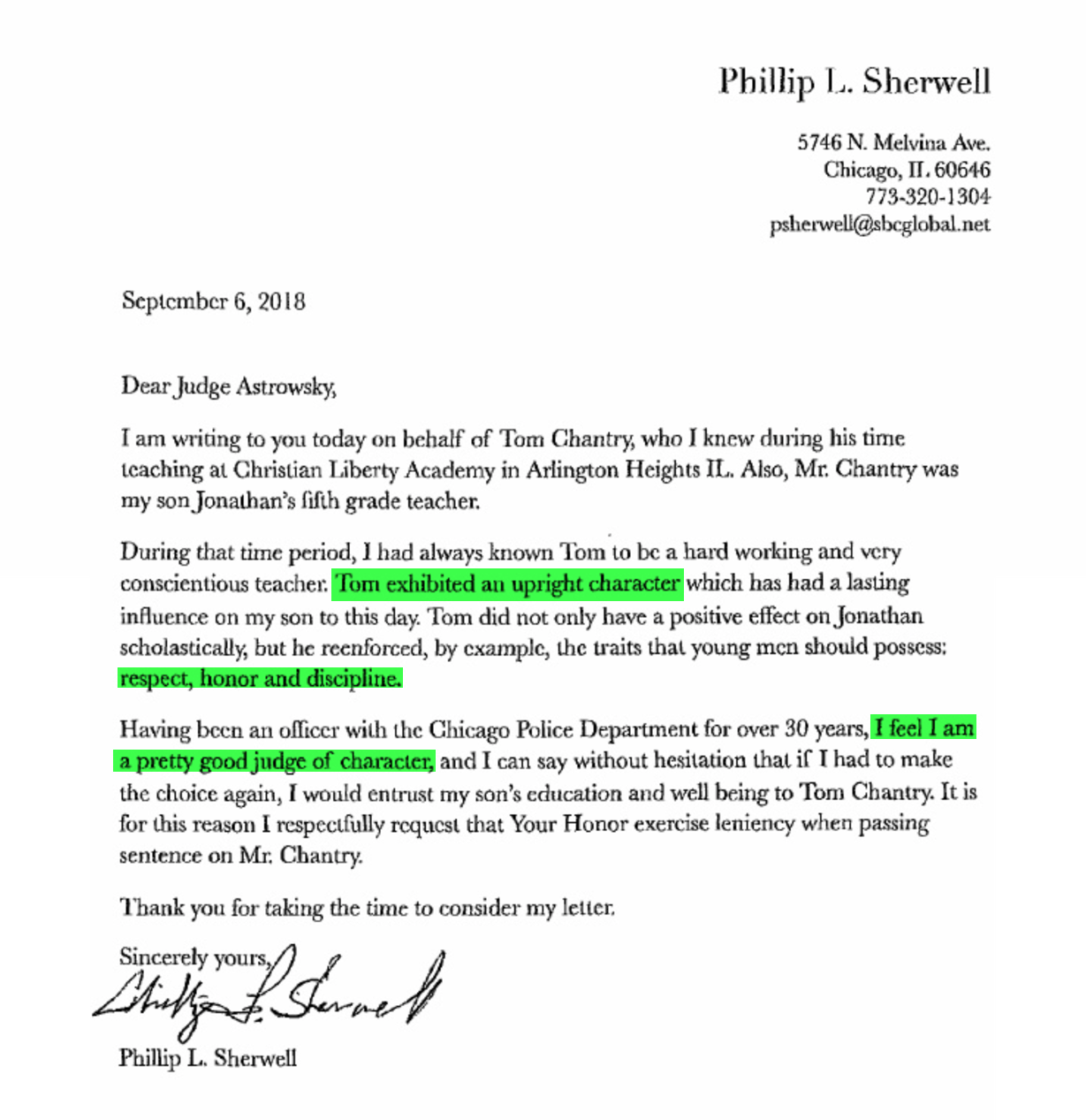 Josie Sherwell is a teacher at CLA. I would guess she felt a bit pressured by her employer to write a favorable letter to Judge Astrowsky on behalf of Thomas Chantry. Again, I am sure she is a decent lady, but she just does not know the facts of the Thomas Chantry case. Again, if she witnessed the entire trial, as I did, she would never have written this letter.