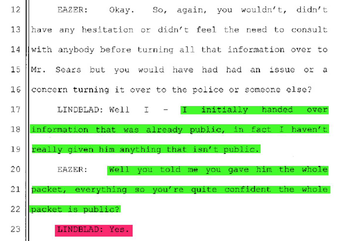 Below is just one example that makes you scratch your head and wonder where the truthful transparency is. This first document was culled from prosecutor Susan Eazer’s deposition of ARBCA leader Don Lindblad. The deposition took place on March 21, 2018.