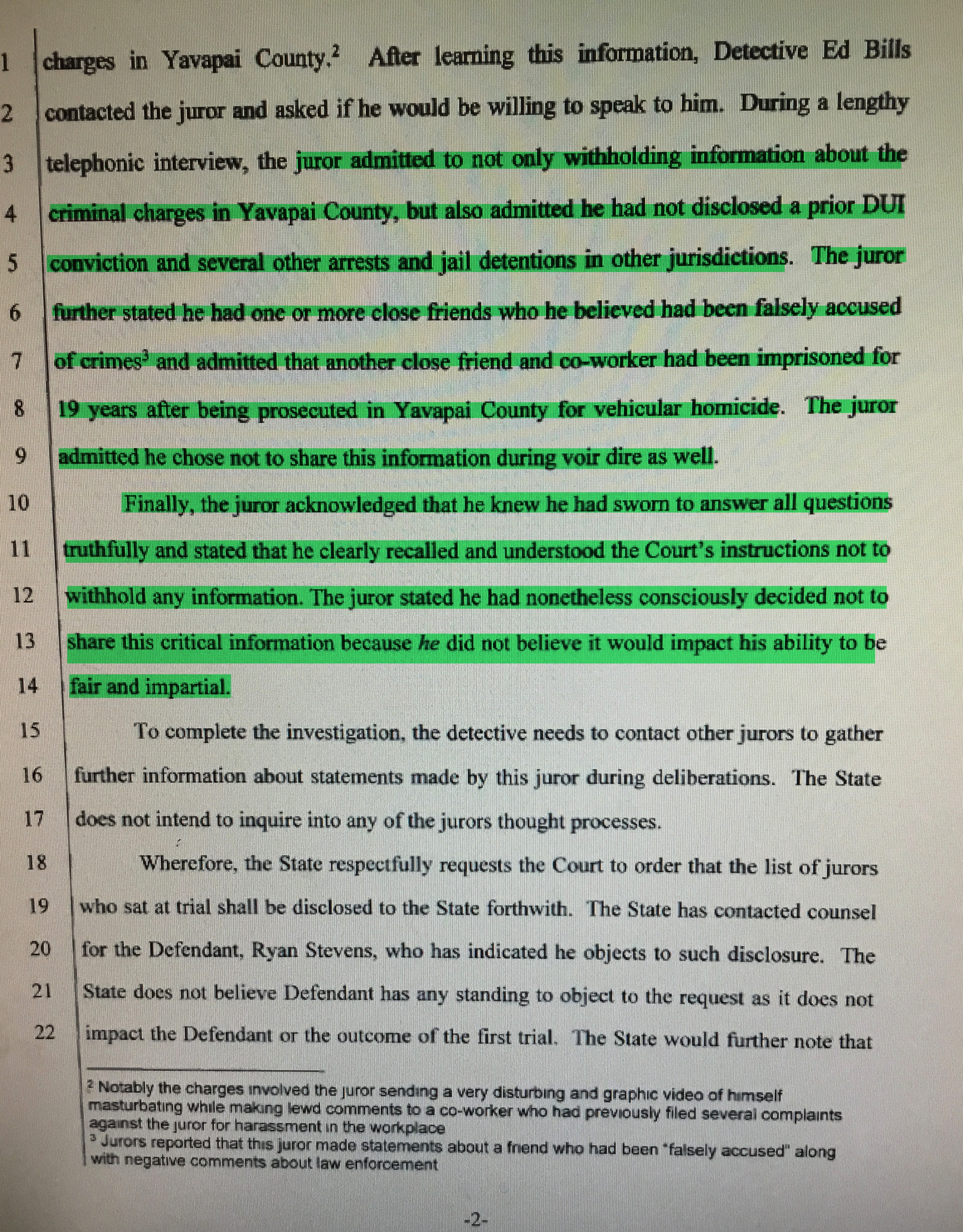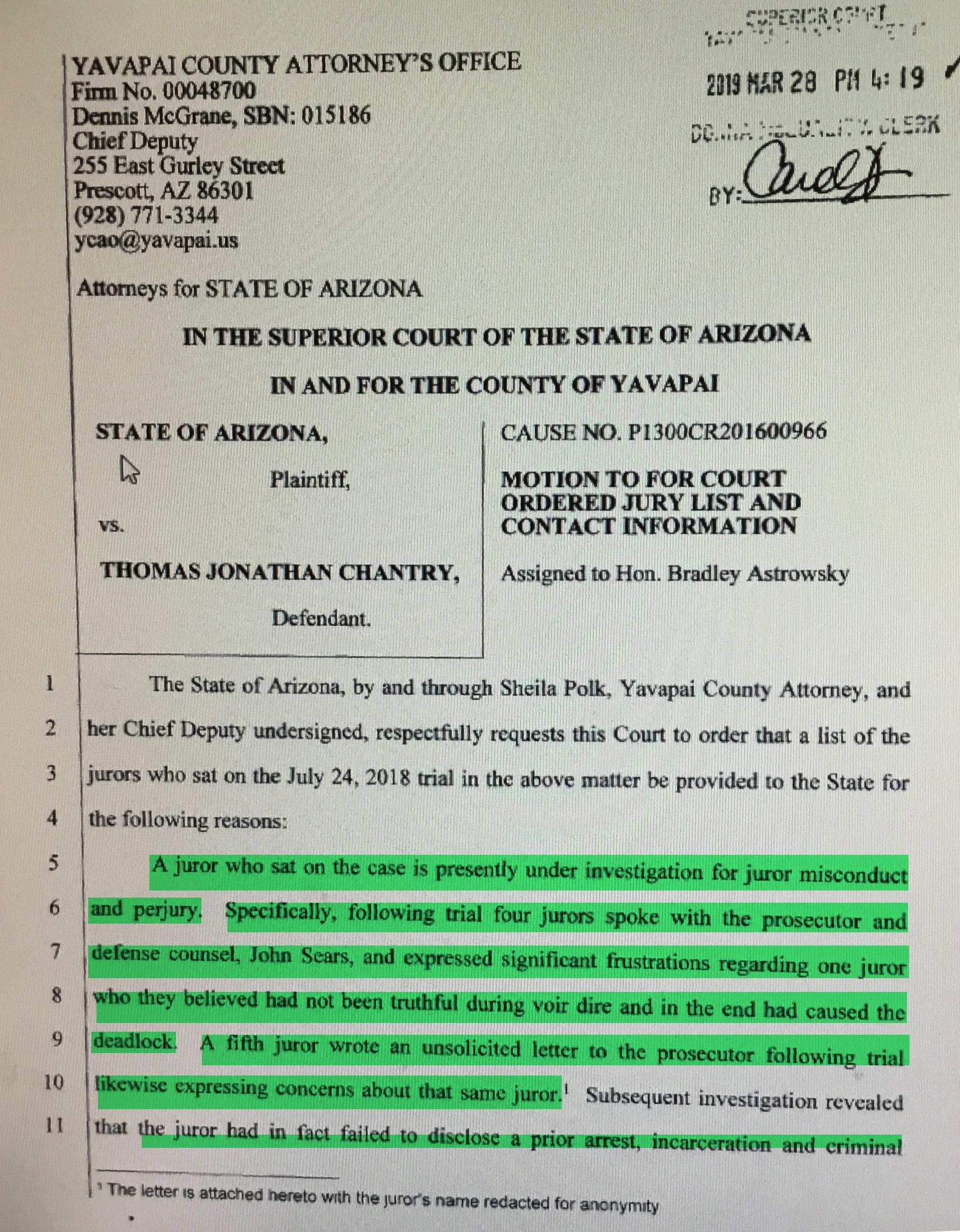 Today when I wasn’t in the courtroom I was sifting through official court documents for the case and came across a shocking revelation. Below is a copy of what I read. It appears that one corrupt juror in Chantry’s first trial has cost the Arizona taxpayers a huge amount of money. He has also, in my opinion, denied, or at least delayed justice from occurring in the Chantry case.