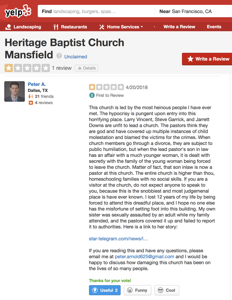 Why do you continue to deceive the people in your church? Have you no fear of God or integrity before God? When are you going to tell your members that you were on the AC in 2000-2001 and knew all about Tom’s abuse of children? When are you going to humble yourself and tell your church you have covered up for Tom all these years? You never reported or stopped him. He went on to Christian Liberty Academy and continued to batter children. Of course, he is a threat. You are the one with no credence. Your attempts to control and manipulate people are failing. The Lord be praised. He has been faithful to expose you.