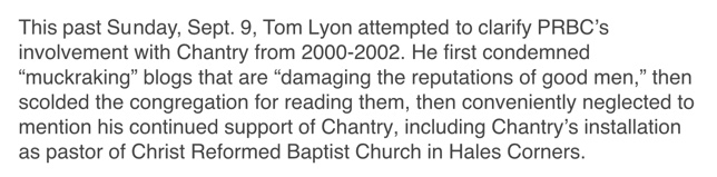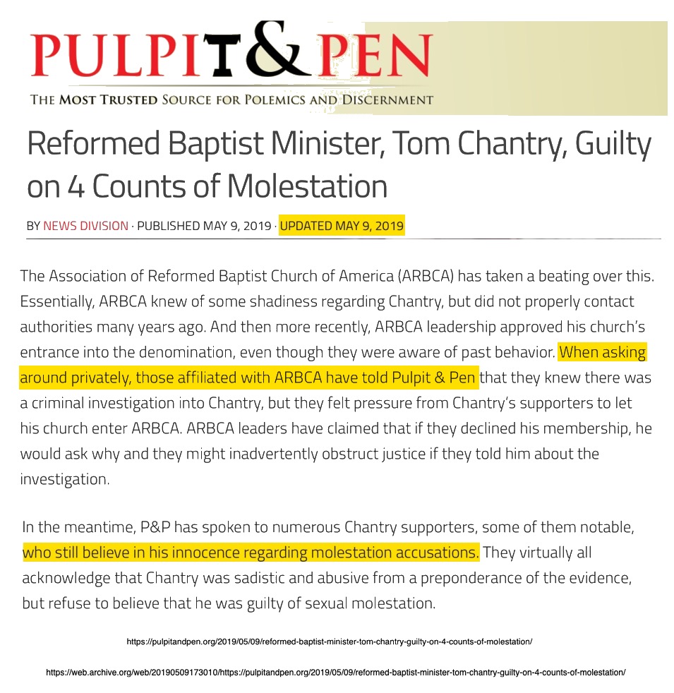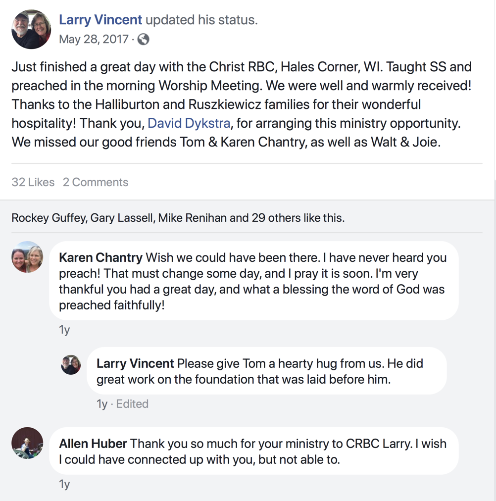 That Larry Vincent is a good friend of Tom Chantry is not in doubt. I believe it’s also clear Vincent has a vested interest in keeping the truth of the ARBCA coverup of Chantry’s known crimes from his church members. I hope all members of Vincent’s church examine the evidence and reach their own conclusions.