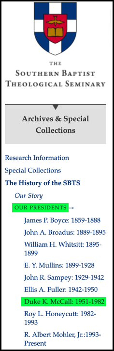 Who is Duke K. McCall, you ask? He was the seventh President of SBTS, serving from 1951-1982.  He was the President when Al Mohler arrived at the SBTS as a student.